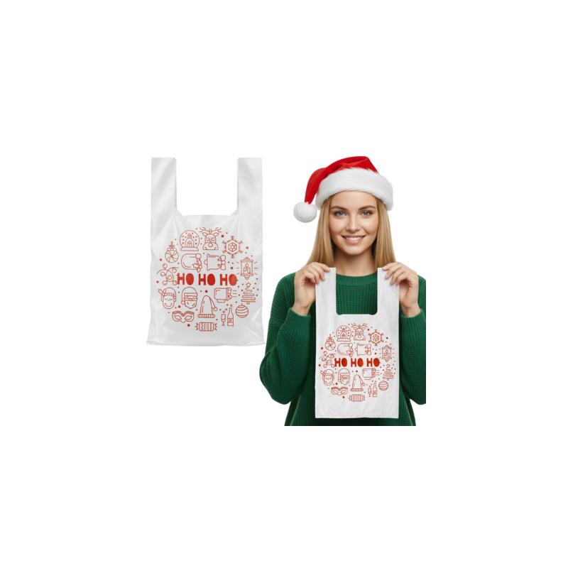Reklamówki jednorazowe świąteczne 34+2f10/64cm 54x64cm 0,013 100szt HD PE Nadruk Ho Ho Ho