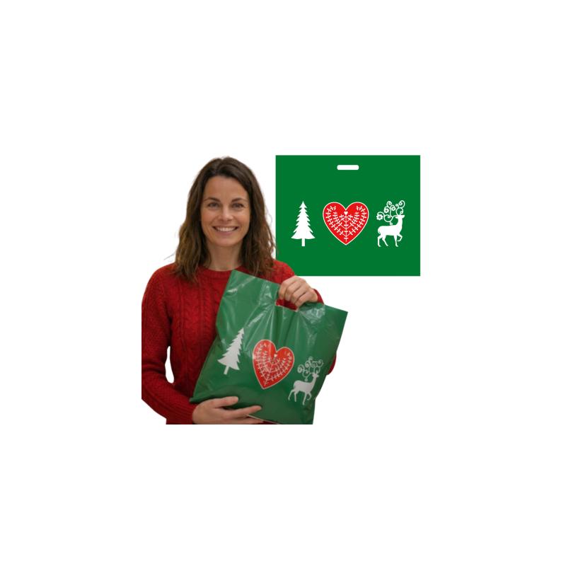Torby Reklamowe Świąteczne 600x500mm 60x50cm LD PE 0,06 Zielona